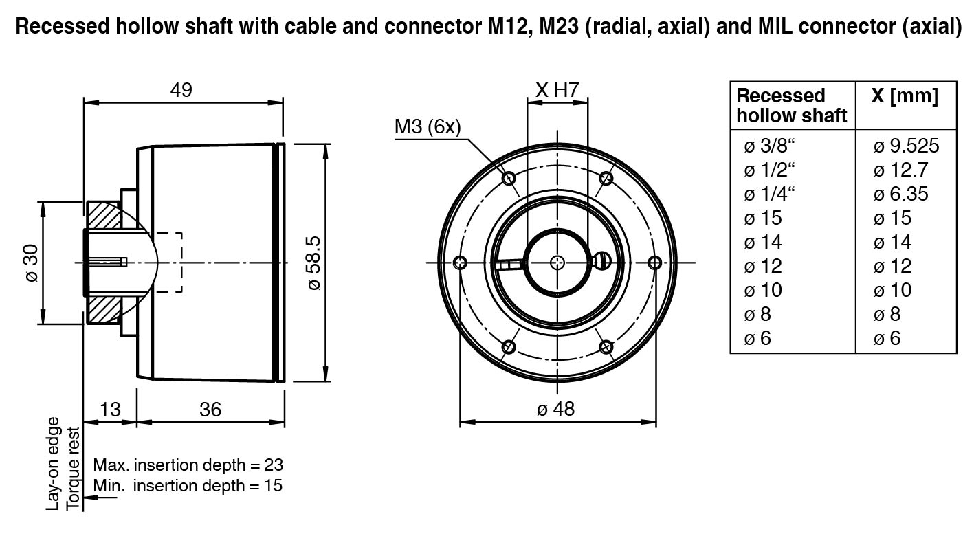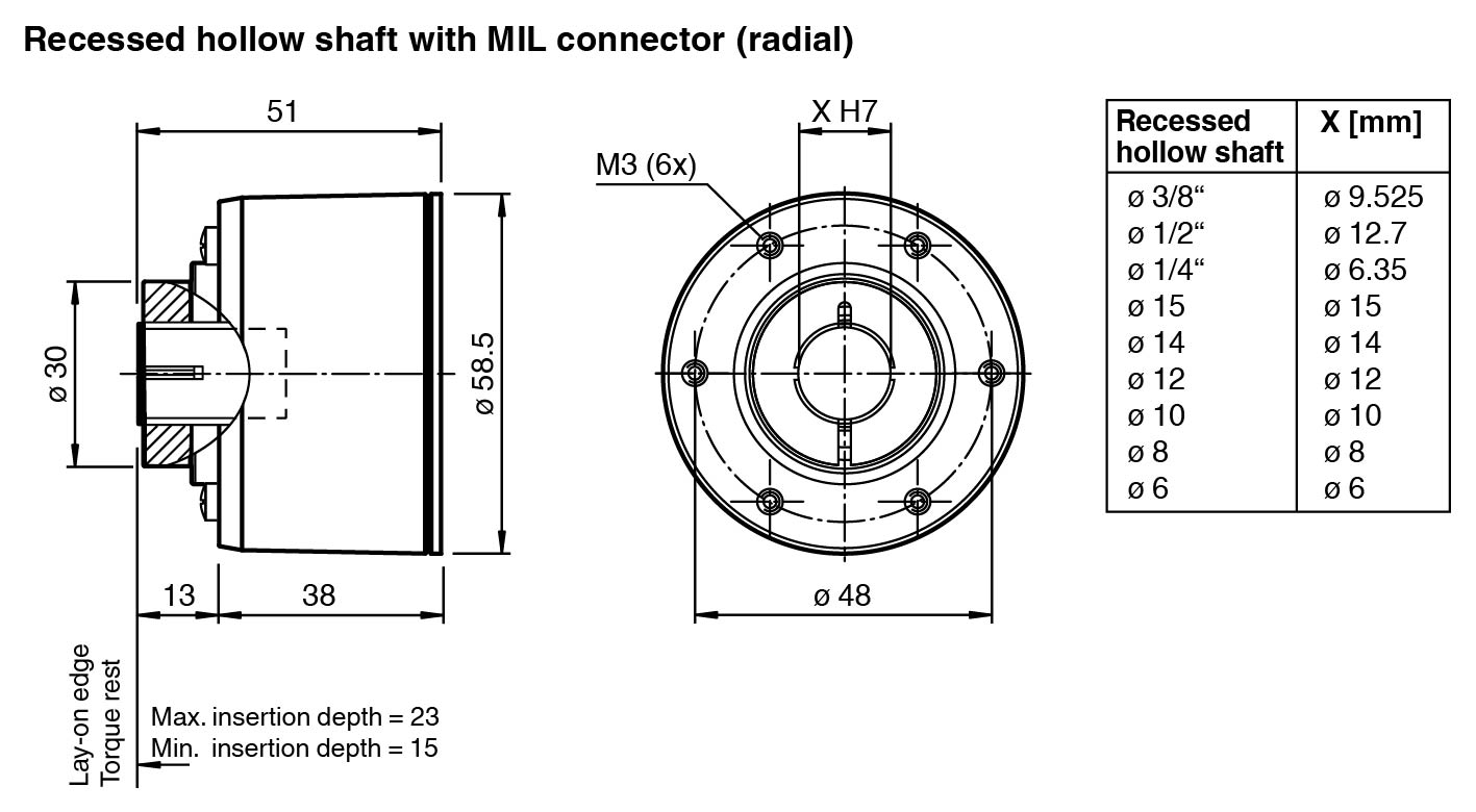 Recessed hollow shaft