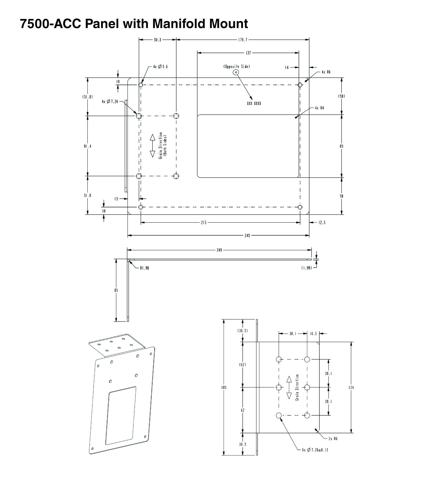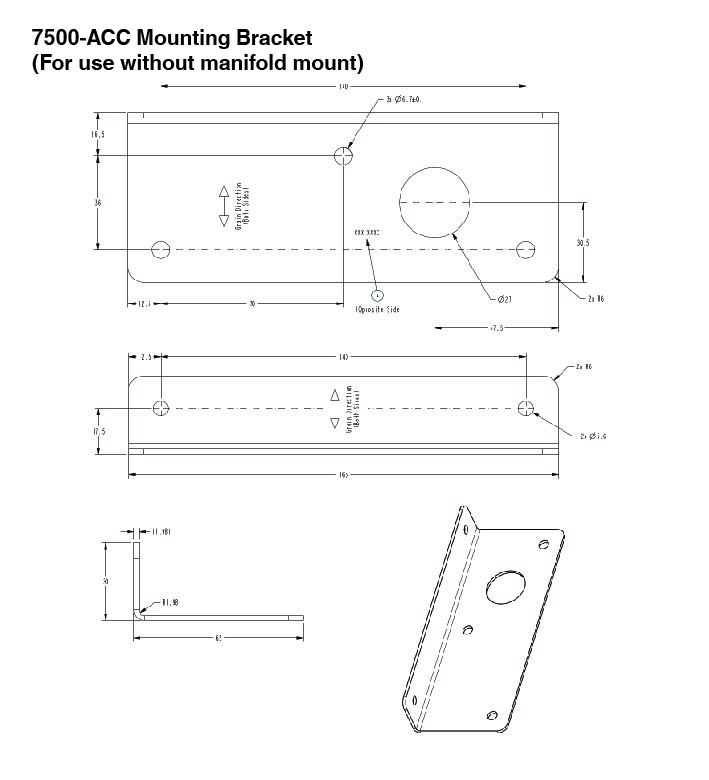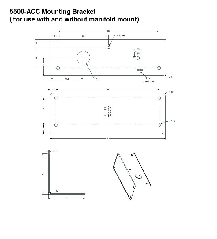 Angle bracket for mounting the 7500-01 control unit with or without 5500-MAN manifold to the enclosure